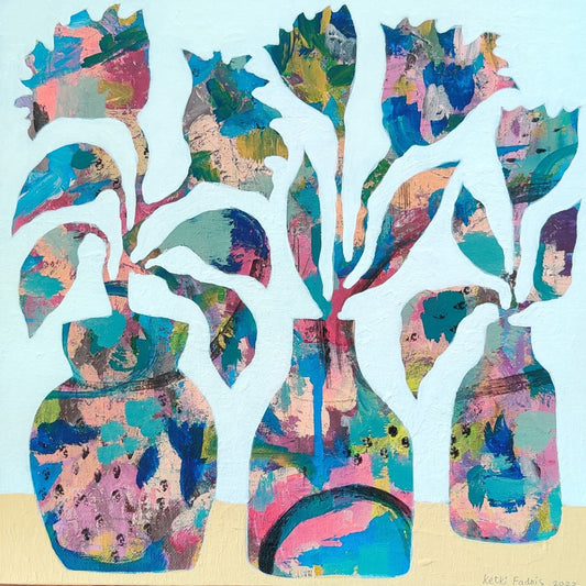 Vibrant Floral Vases - 4 | 12" x 12" | Acrylic on Canvas