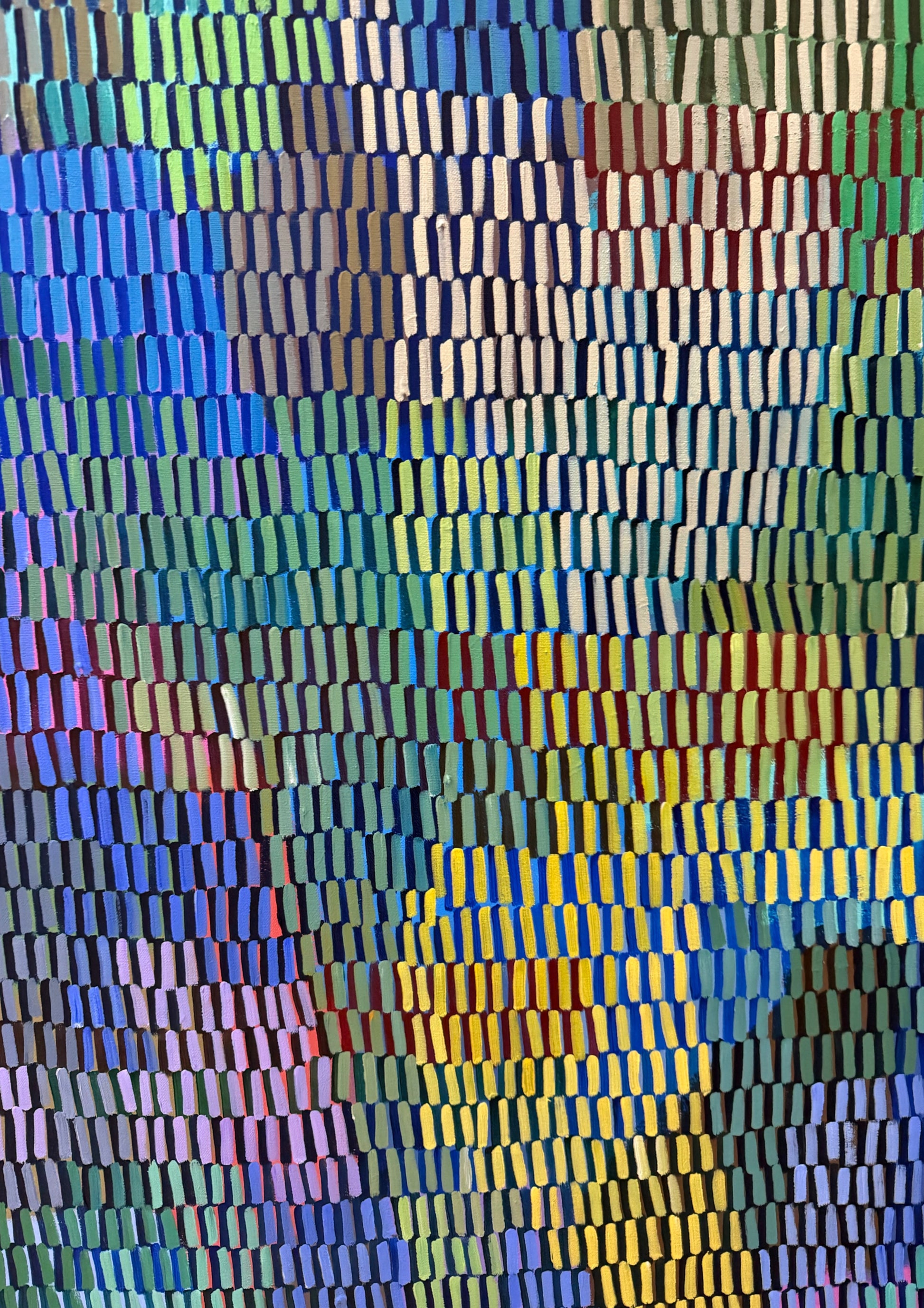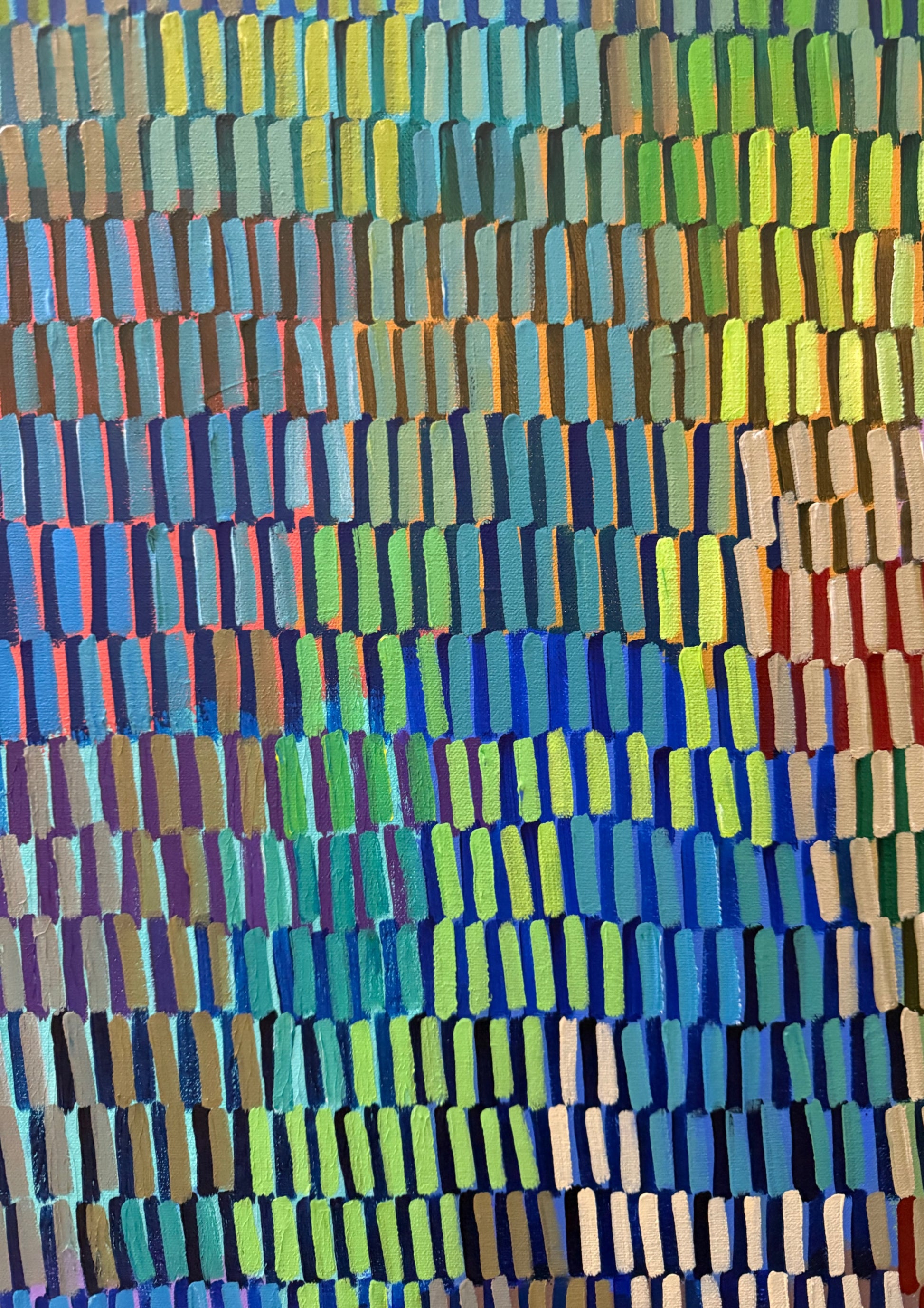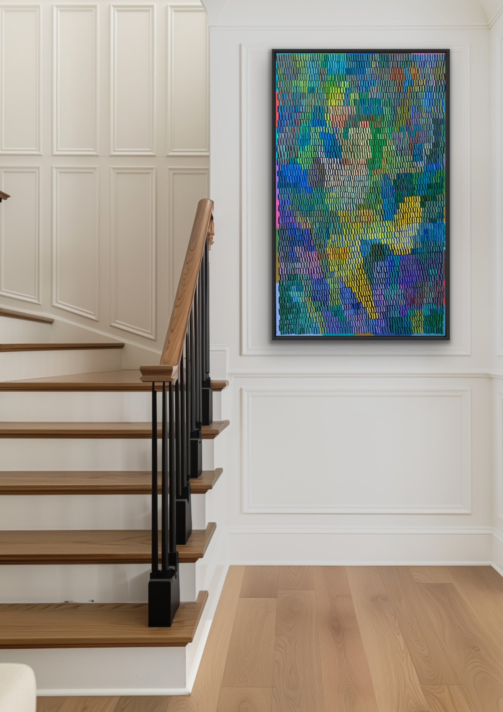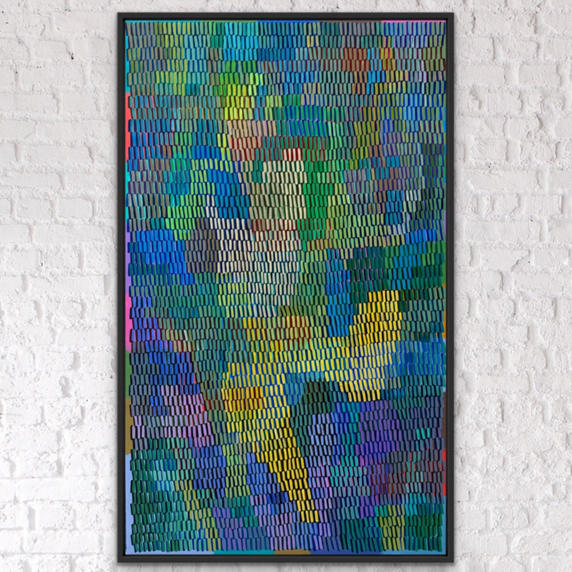 This abstract painting is a vibrant tapestry of spontaneity, each layer and gestural stroke telling a story of intuition and emotion. Crafted from memories and impressions, it captures the essence of life in its raw form. The repetition of mark-making serves a both meditation and a conduit for artistic fulfilment, infusing the art with a profound sense of depth and meaning.