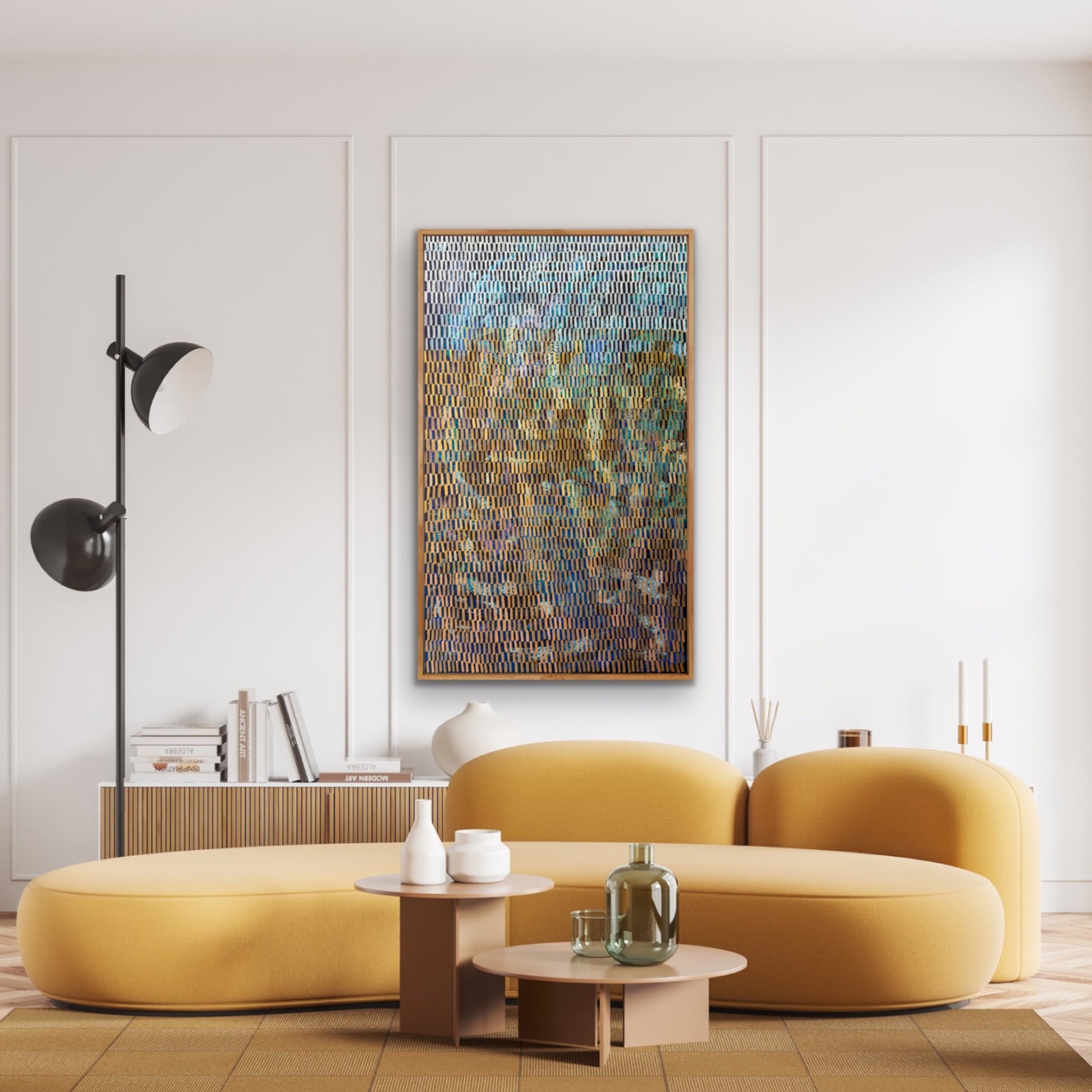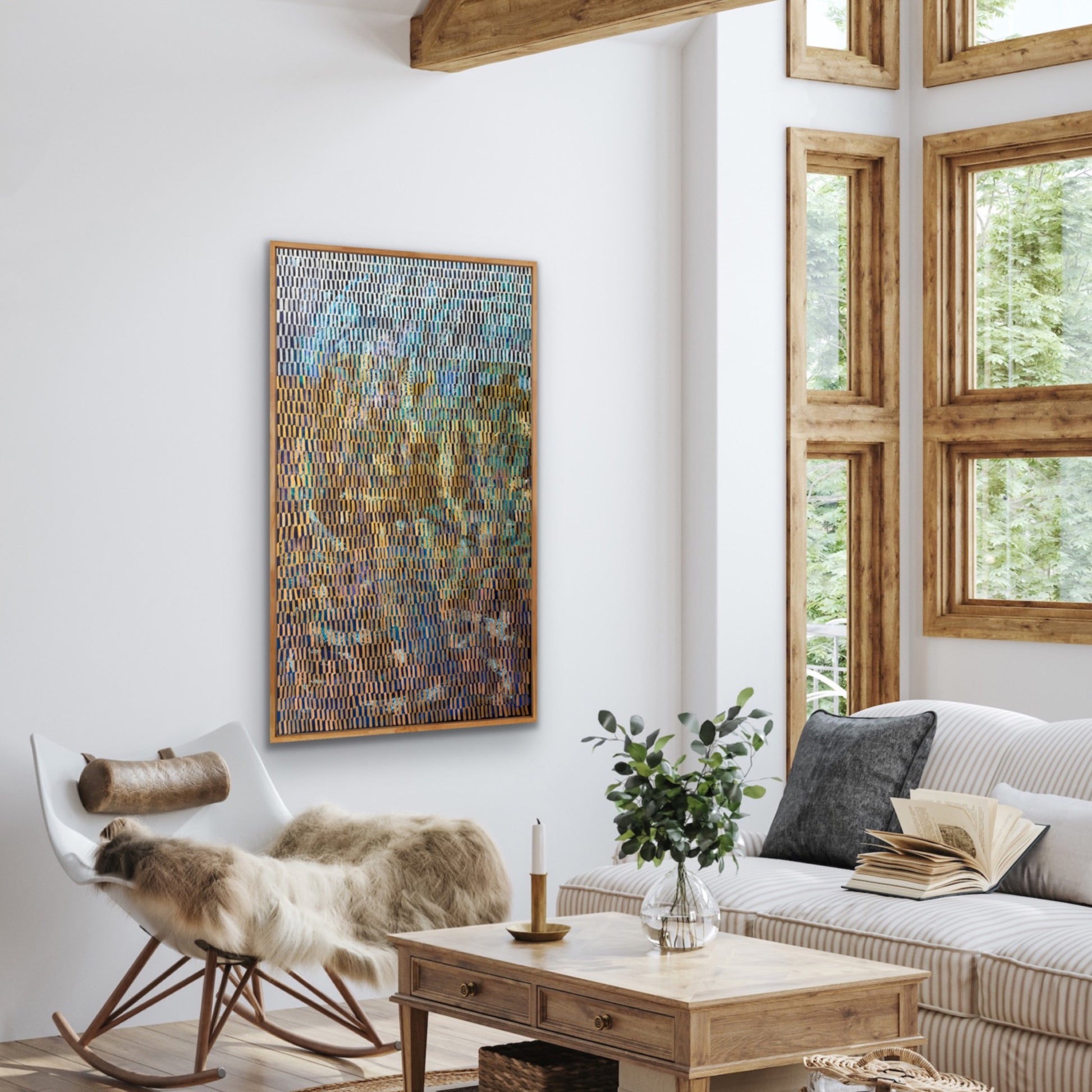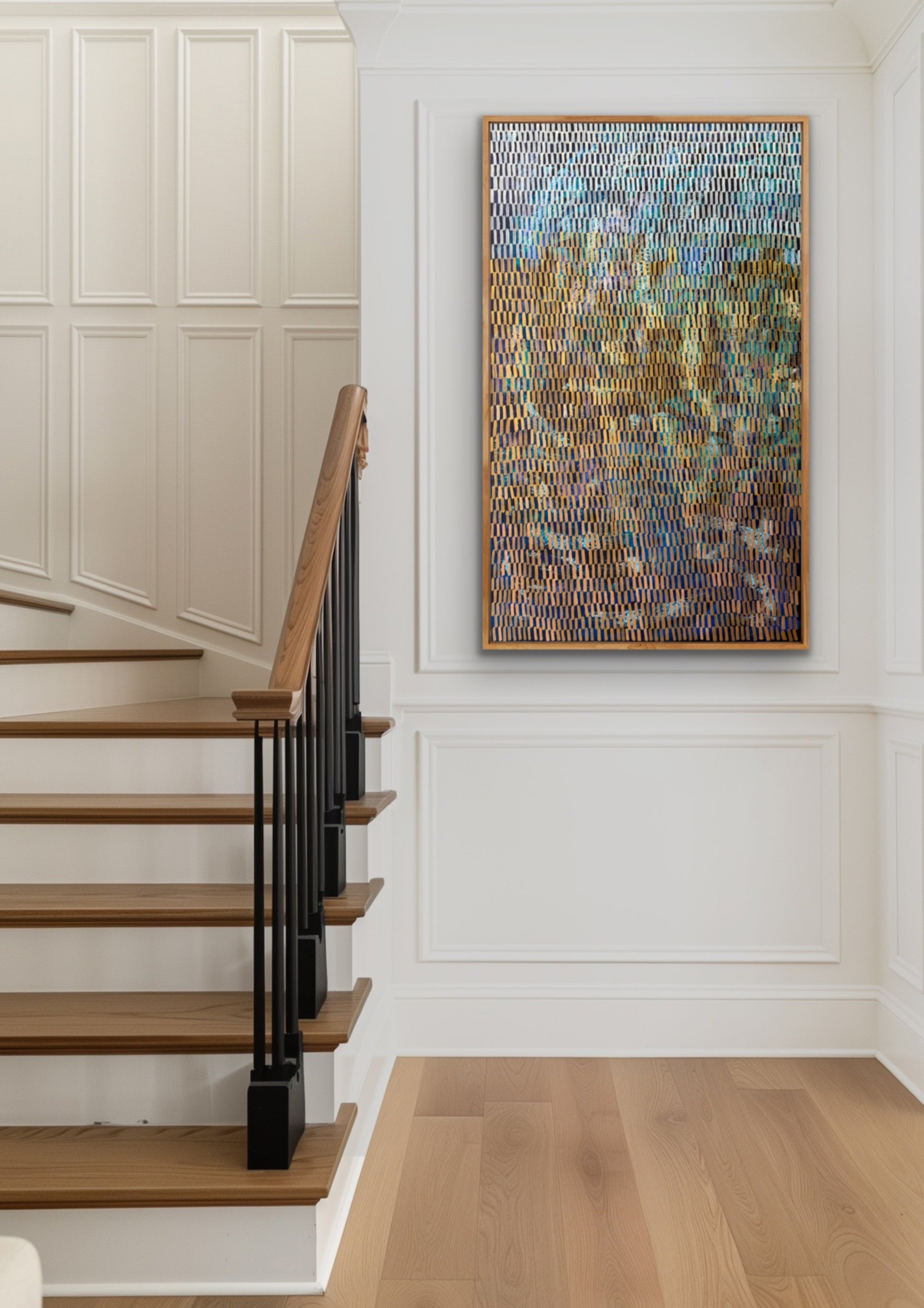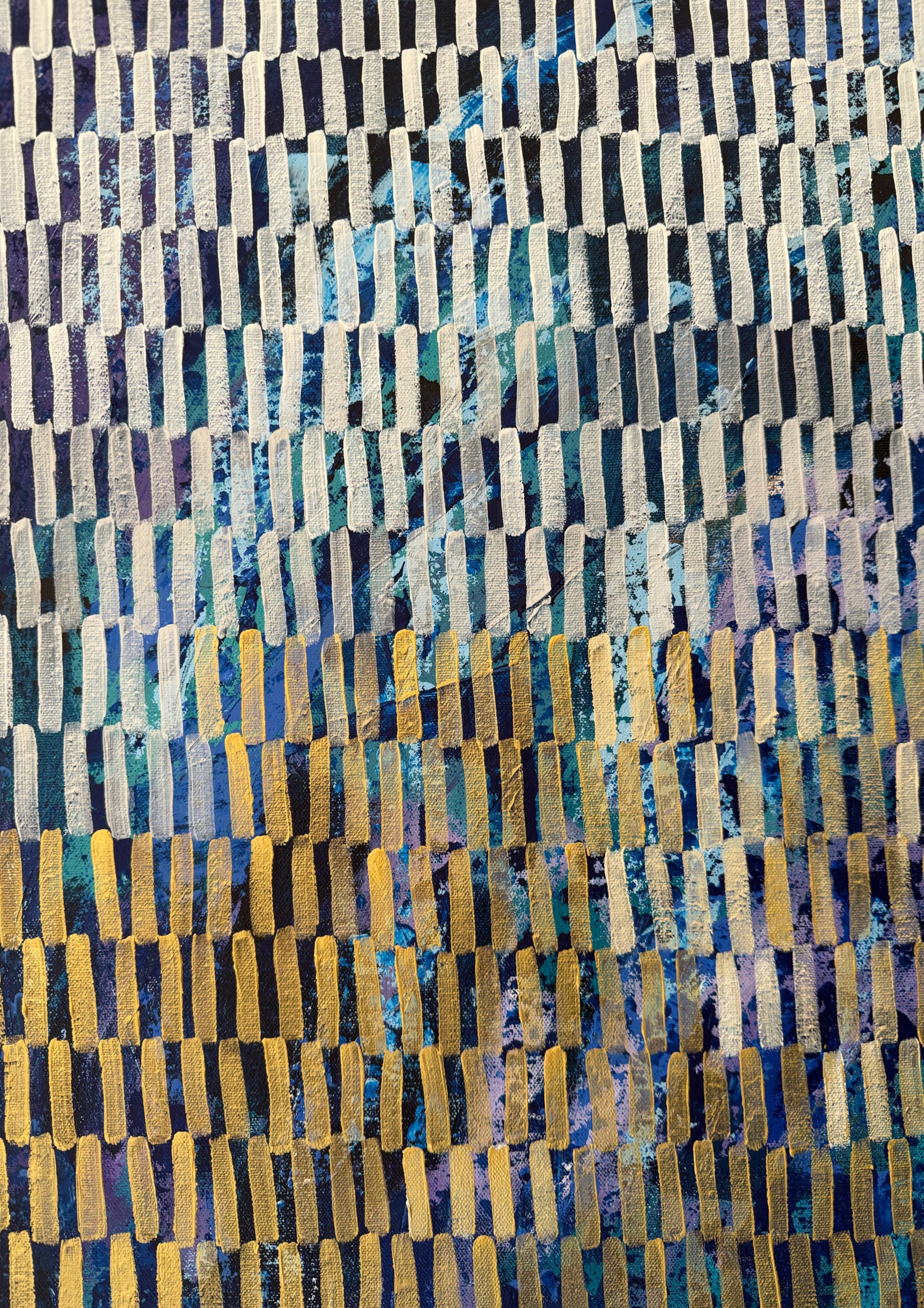 This abstract painting is a vibrant tapestry of spontaneity, each layer and gestural stroke telling a story of intuition and emotion. Crafted from memories and impressions, it captures the essence of life in its raw form. The repetition of mark-making serves a both meditation and a conduit for artistic fulfilment, infusing the art with a profound sense of depth and meaning.