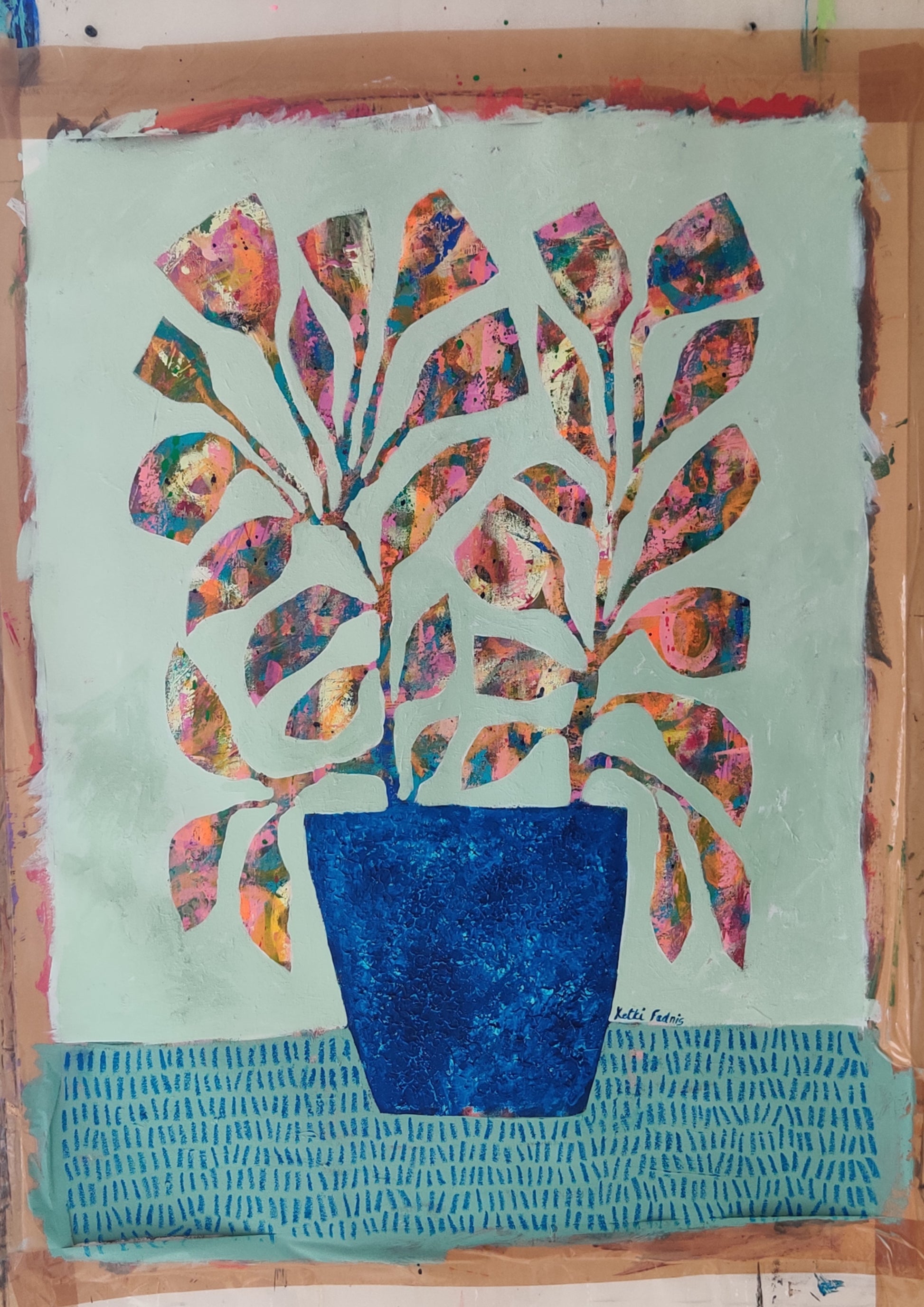 Blue Vase and Flowers | 23.25" x 31.5" | Acrylic painting on canvas