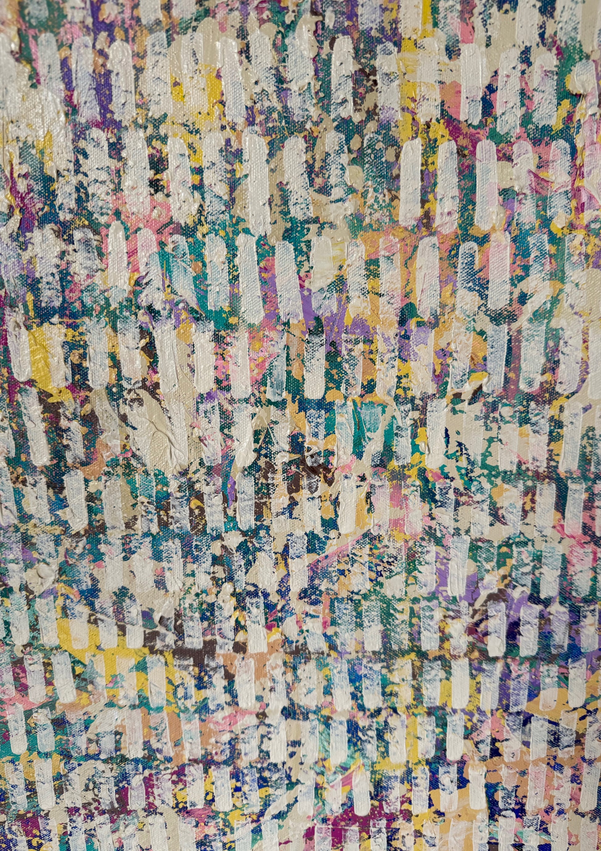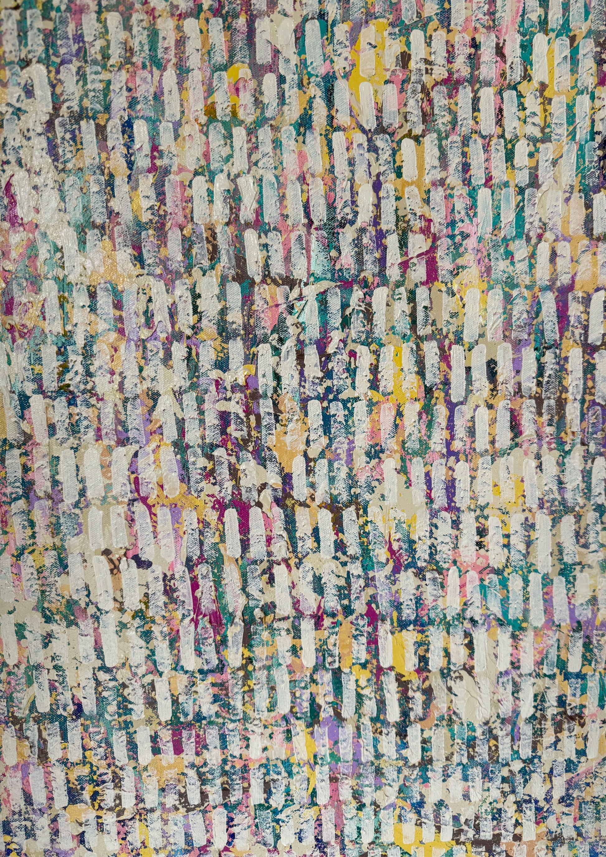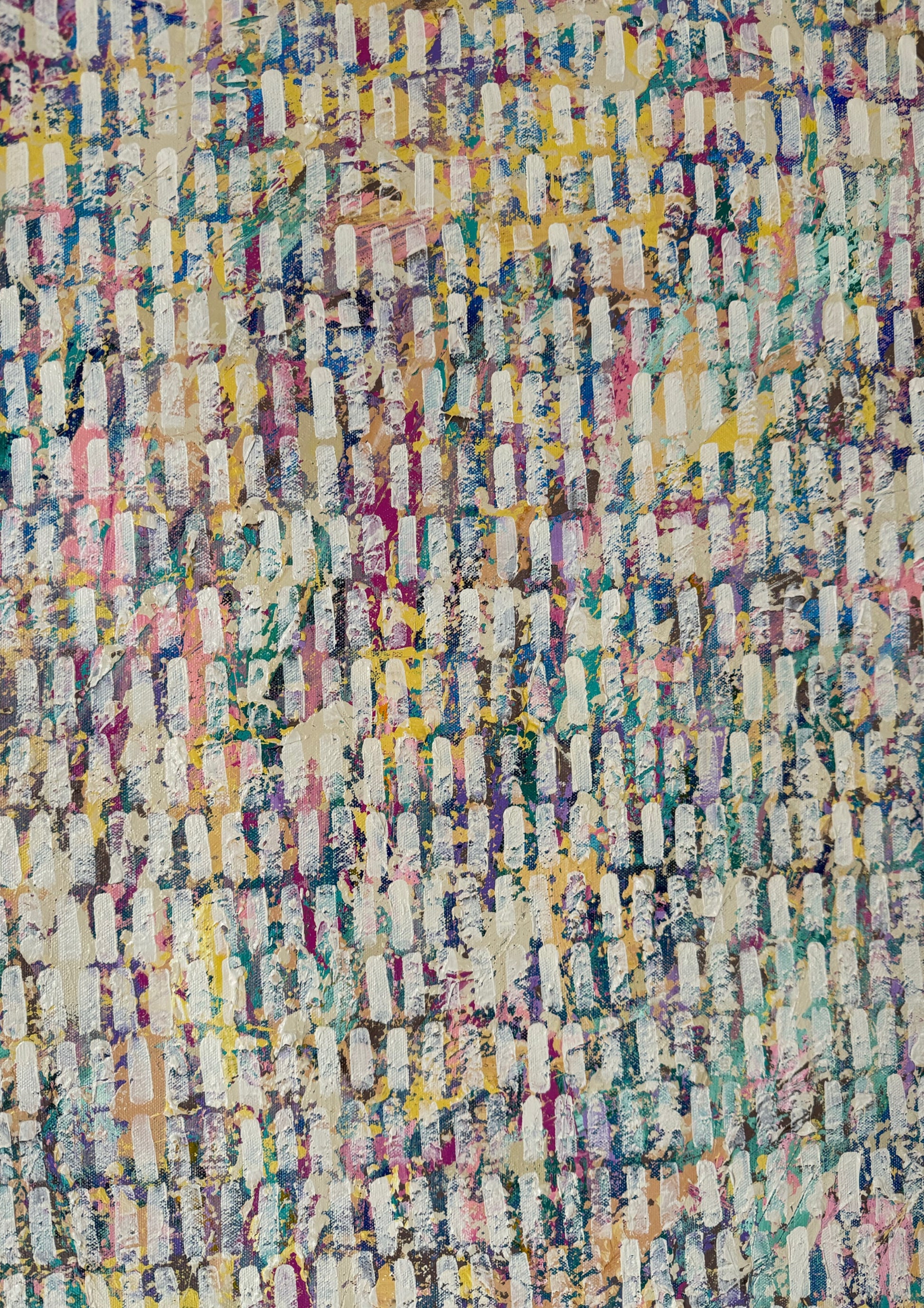 This abstract painting is a vibrant tapestry of spontaneity, each layer and gestural stroke telling a story of intuition and emotion. Crafted from memories and impressions, it captures the essence of life in its raw form. The repetition of mark-making serves a both meditation and a conduit for artistic fulfilment, infusing the art with a profound sense of depth and meaning.
