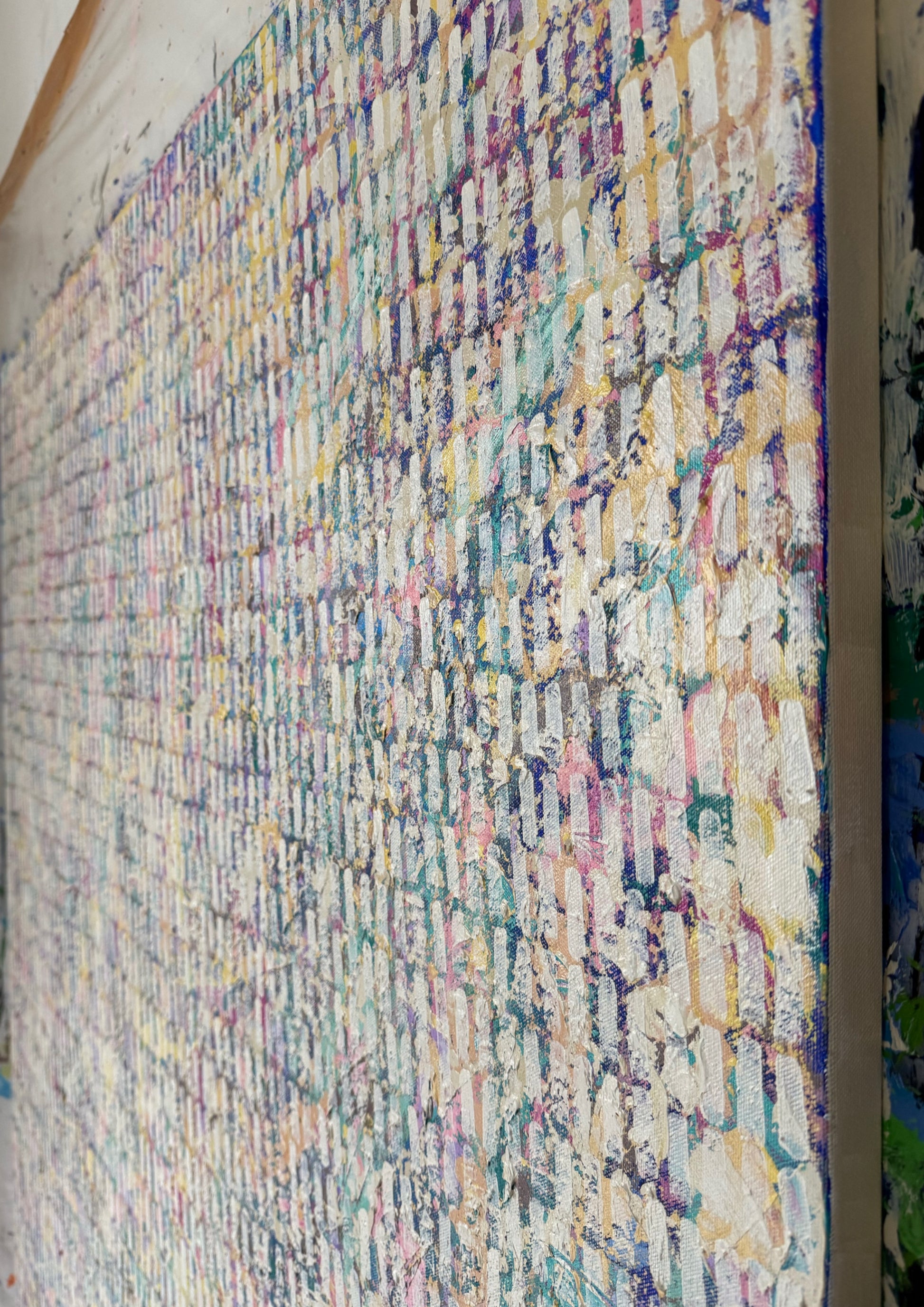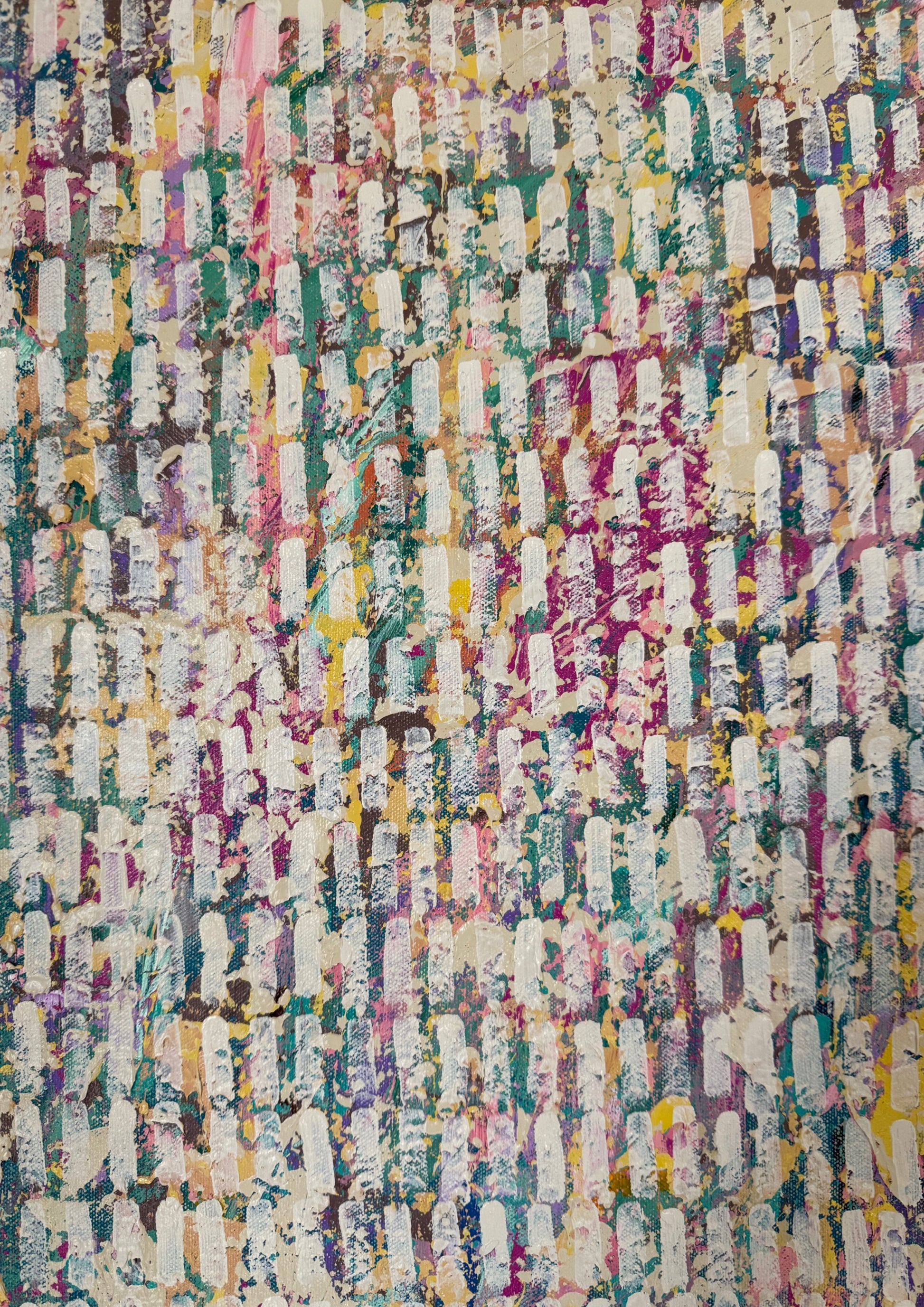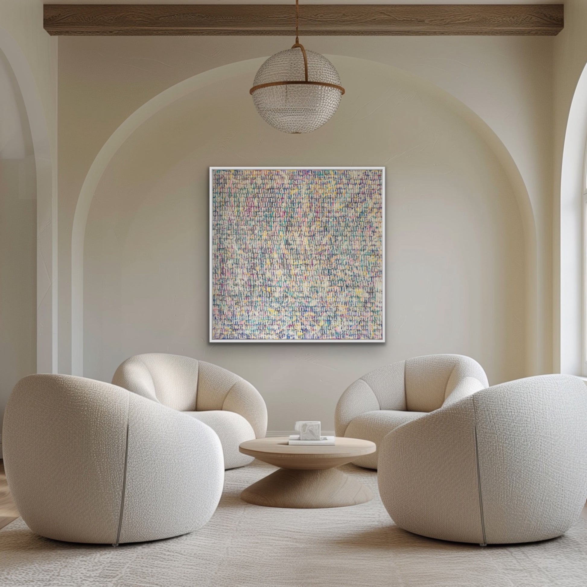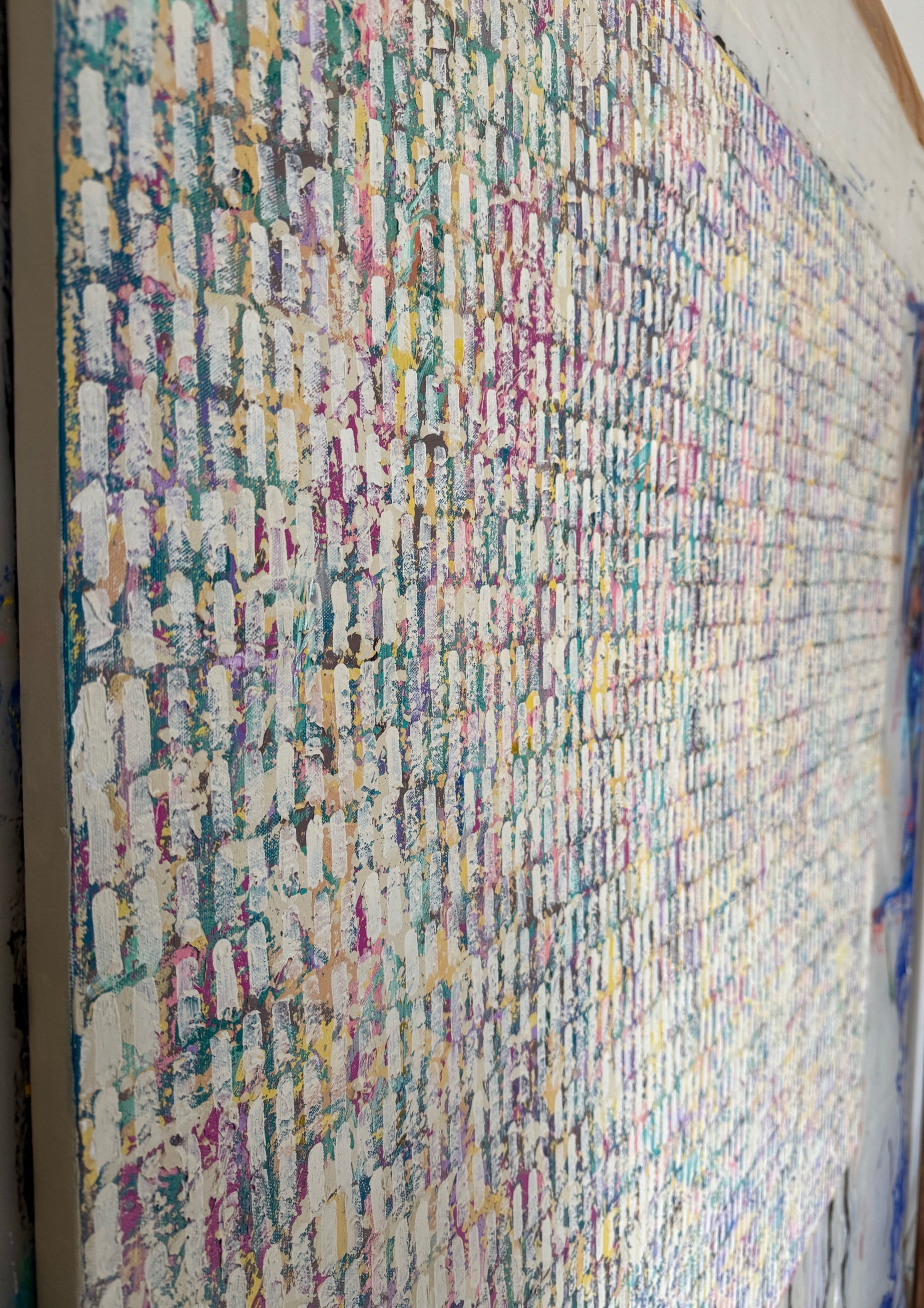 This abstract painting is a vibrant tapestry of spontaneity, each layer and gestural stroke telling a story of intuition and emotion. Crafted from memories and impressions, it captures the essence of life in its raw form. The repetition of mark-making serves a both meditation and a conduit for artistic fulfilment, infusing the art with a profound sense of depth and meaning.