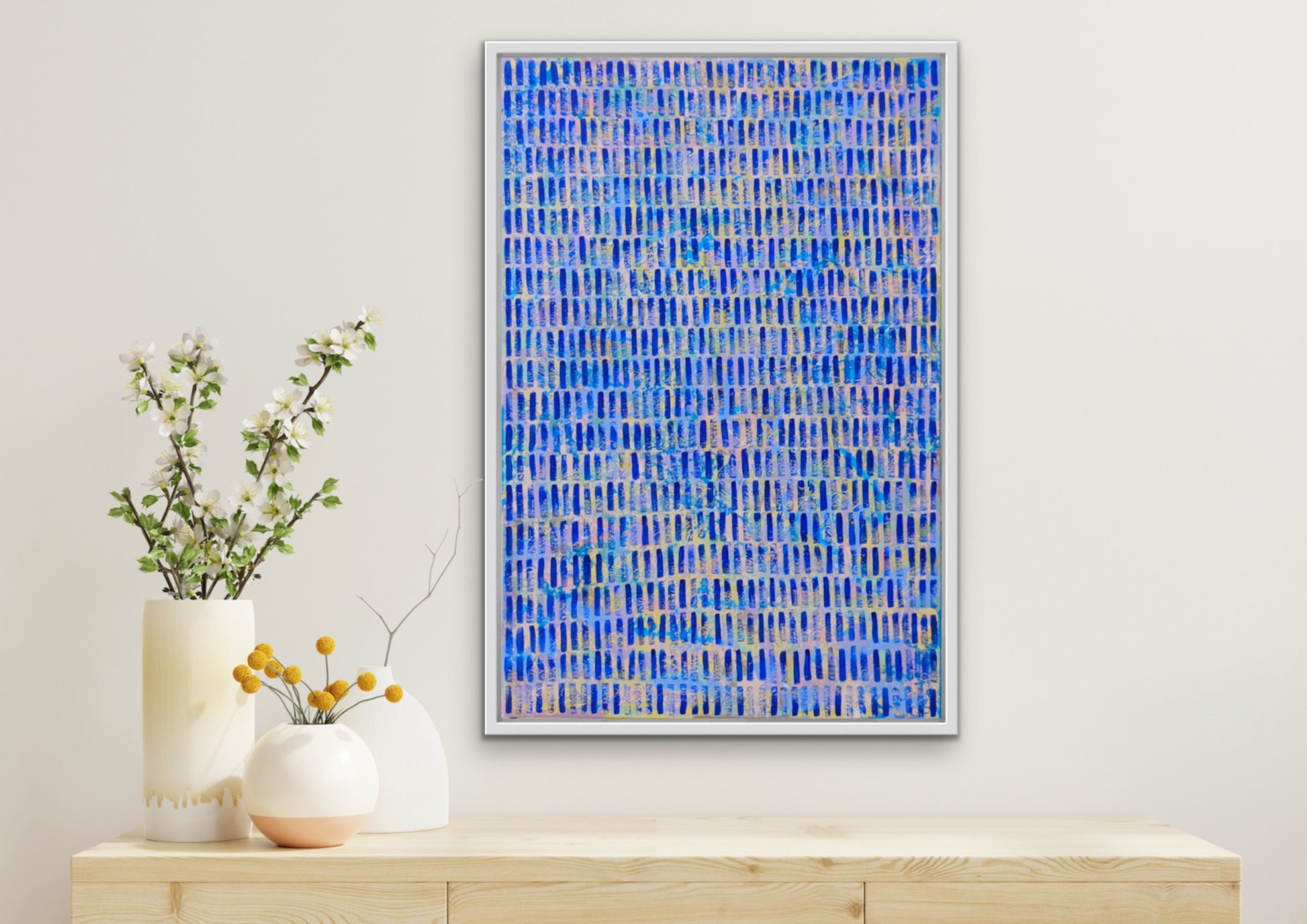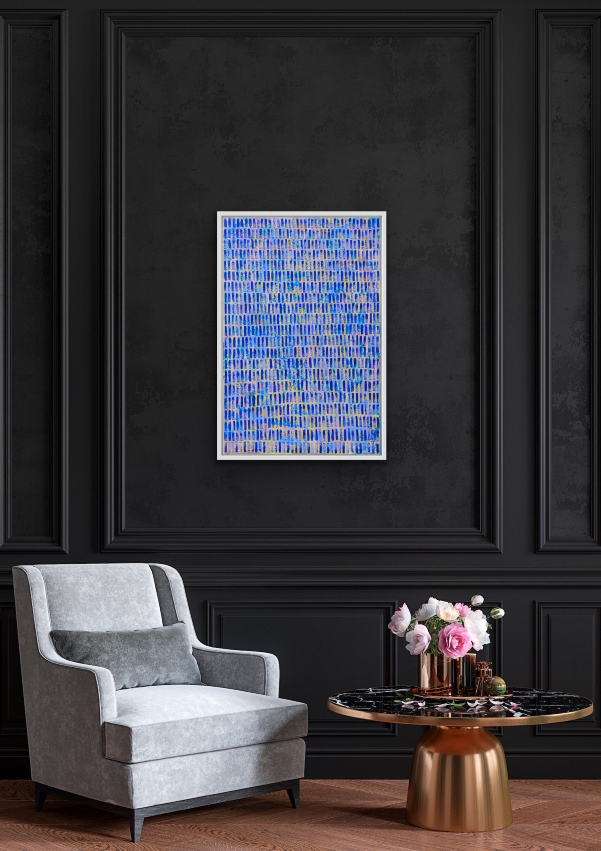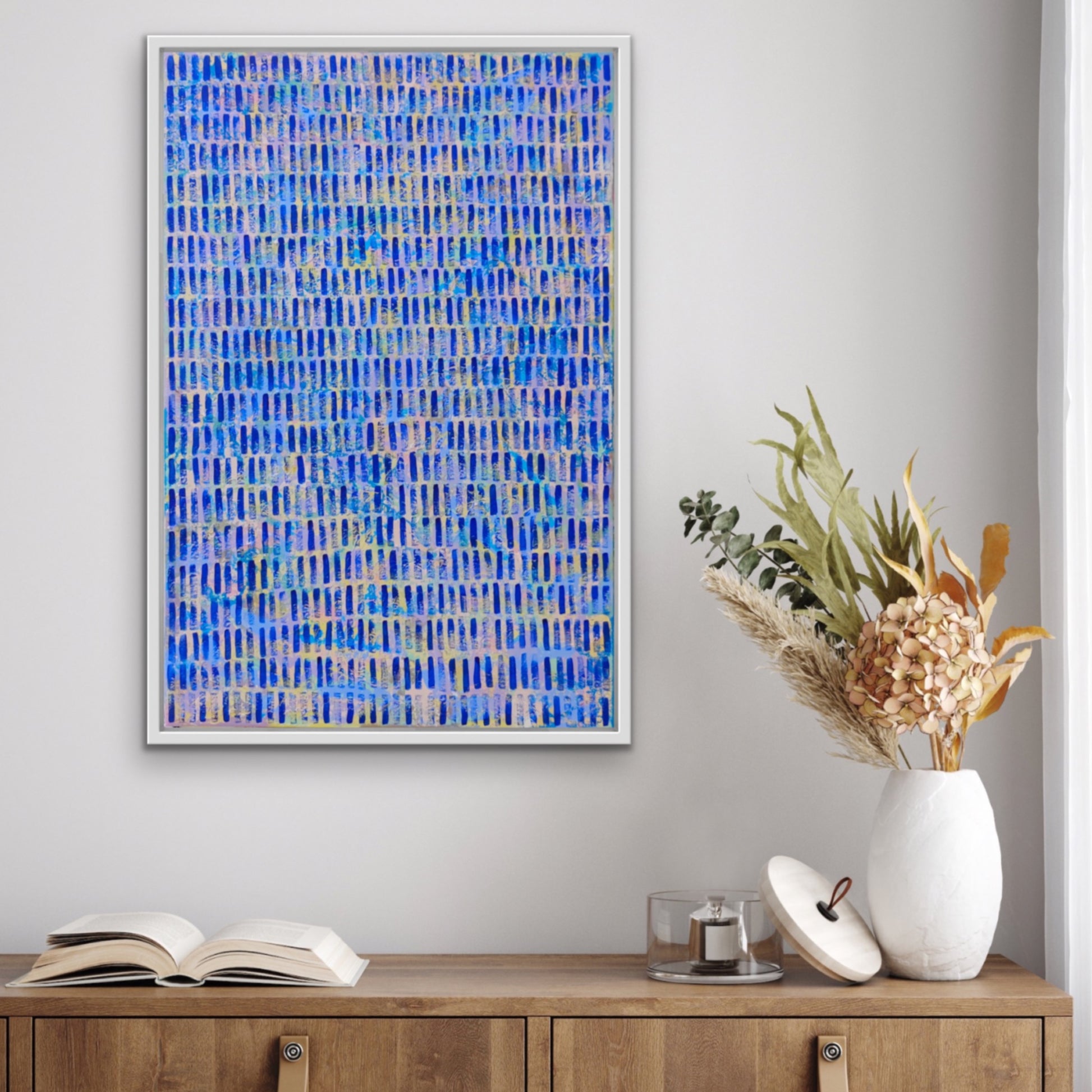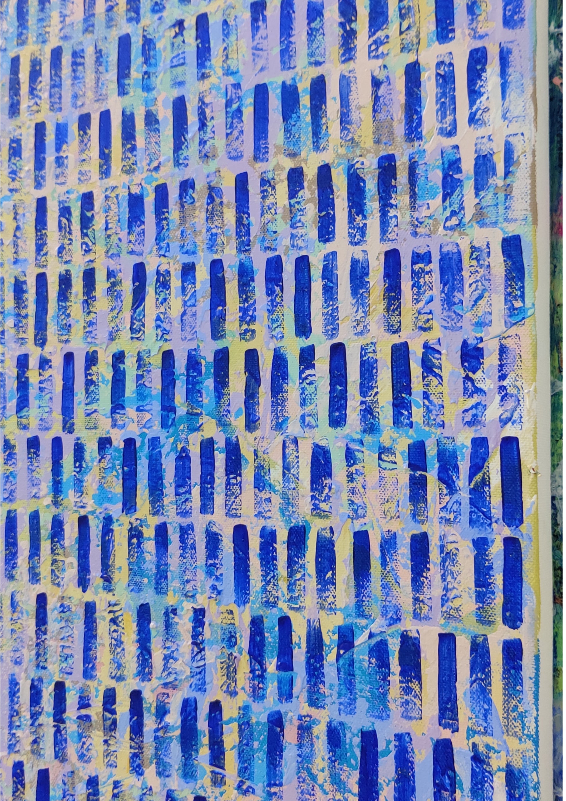 This abstract painting is a vibrant tapestry of spontaneity, each layer and gestural stroke telling a story of intuition and emotion. Crafted from memories and impressions, it captures the essence of life in its raw form. The repetition of mark-making serves a both meditation and a conduit for artistic fulfilment, infusing the art with a profound sense of depth and meaning.