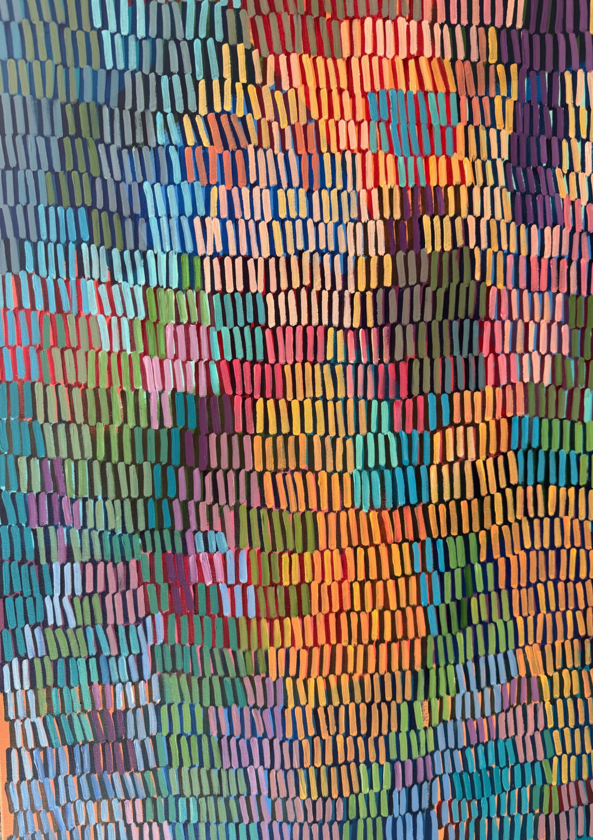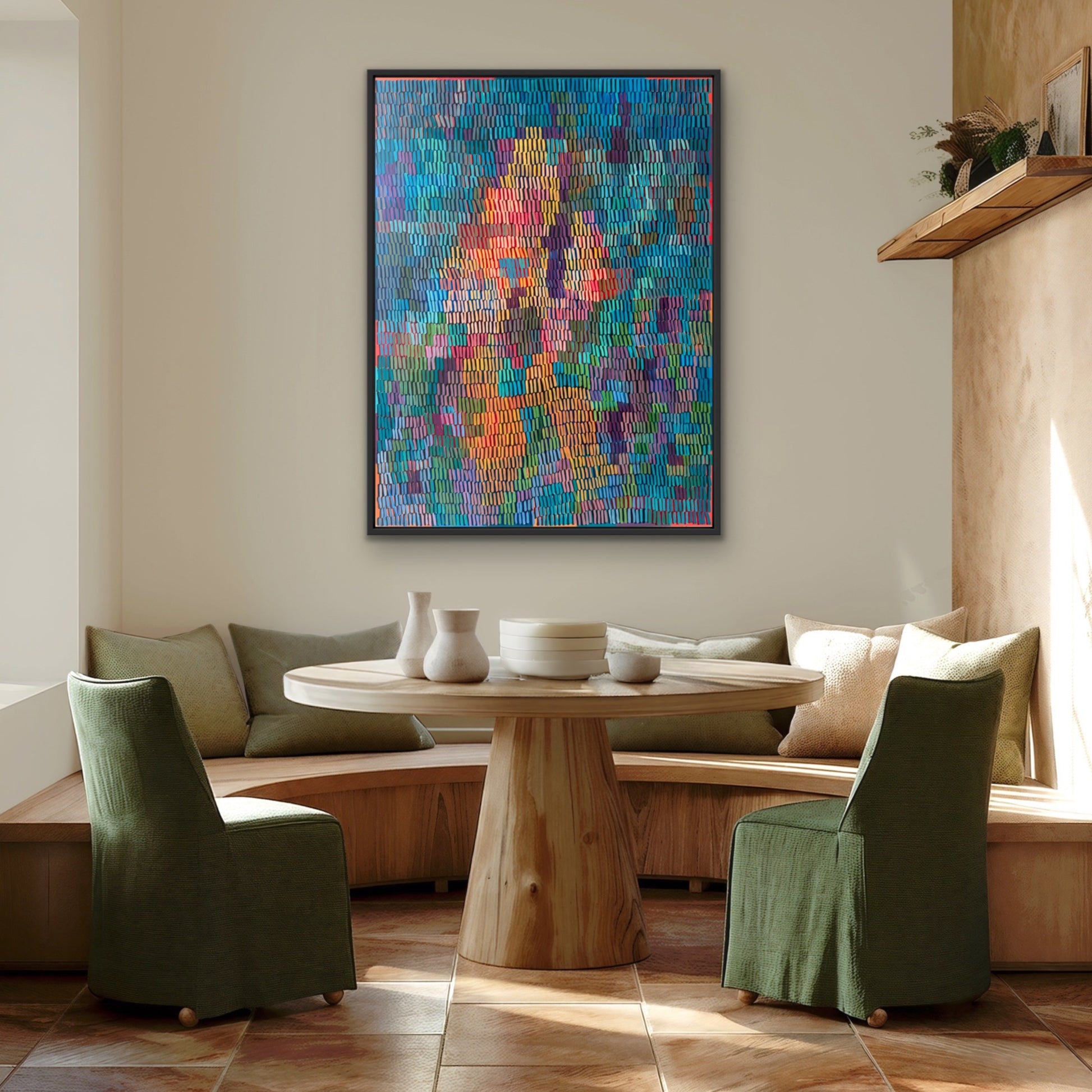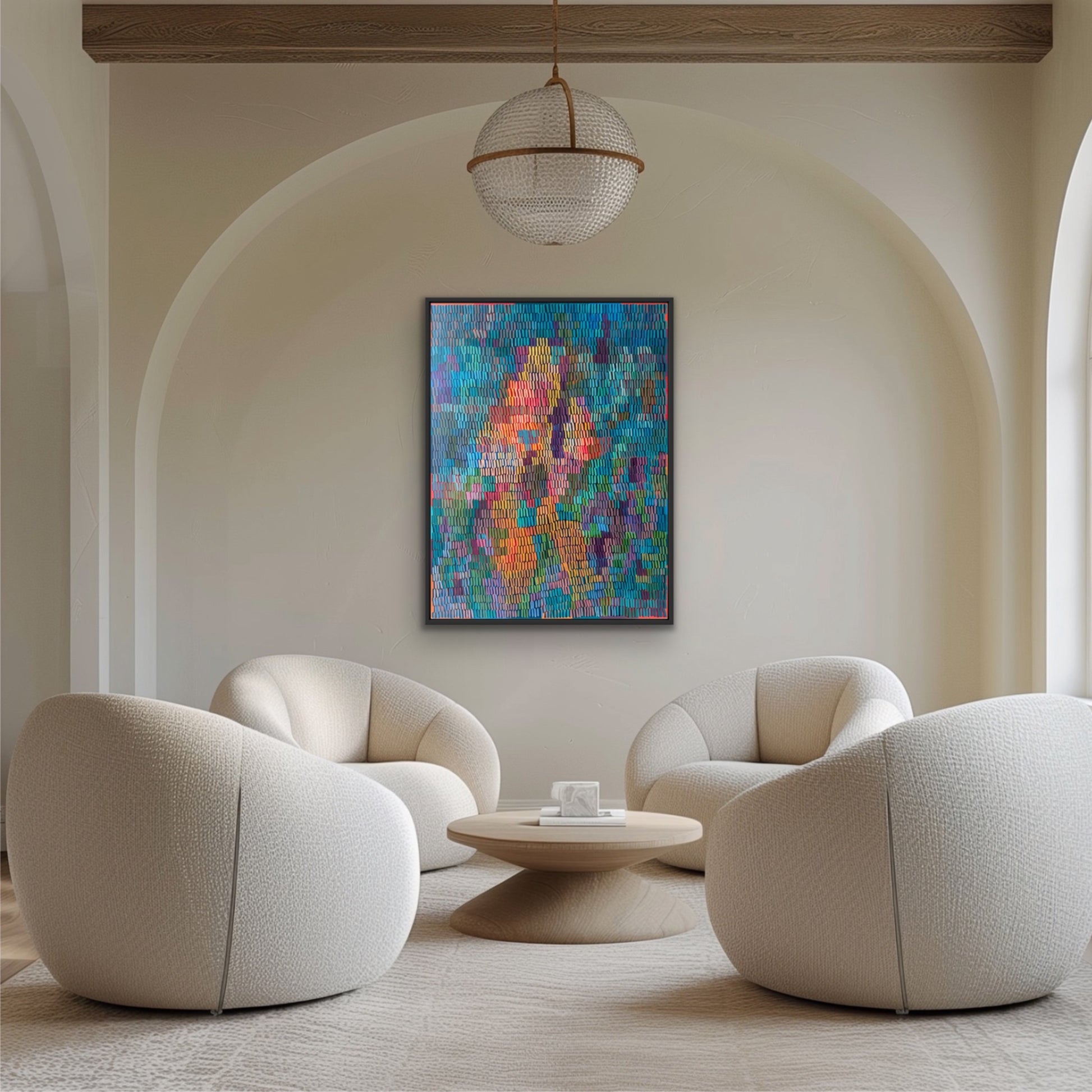 This abstract painting is a vibrant tapestry of spontaneity, each layer and gestural stroke telling a story of intuition and emotion. Crafted from memories and impressions, it captures the essence of life in its raw form. The repetition of mark-making serves a both meditation and a conduit for artistic fulfilment, infusing the art with a profound sense of depth and meaning.