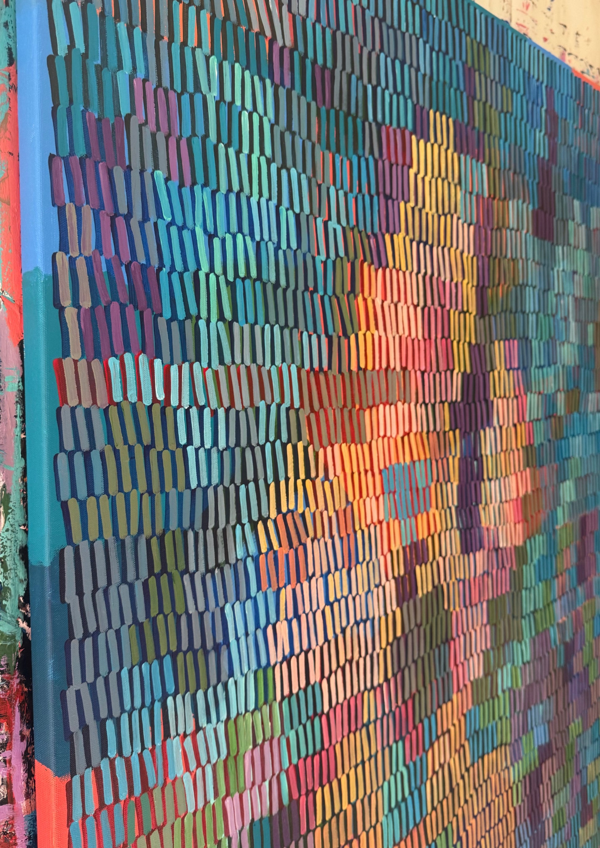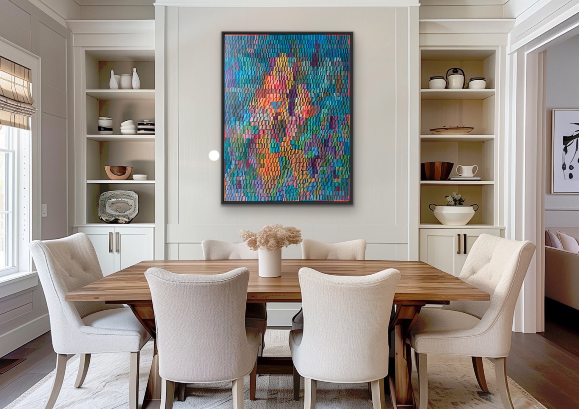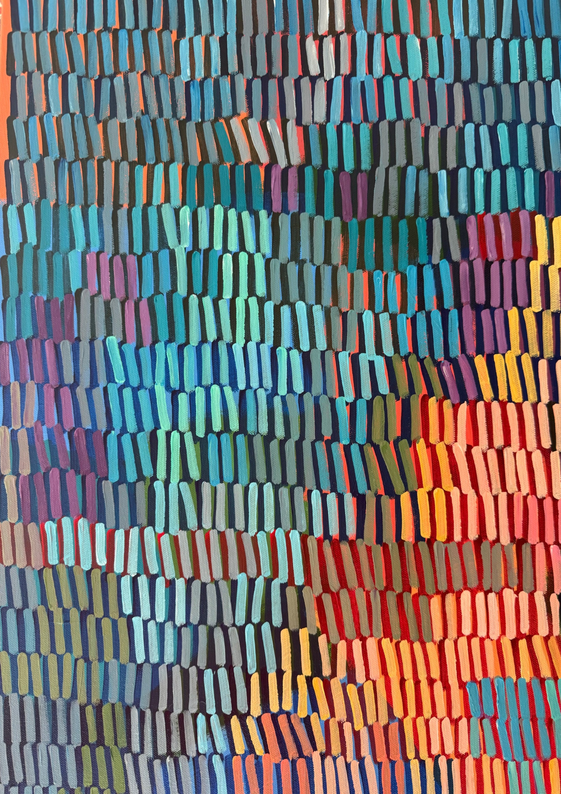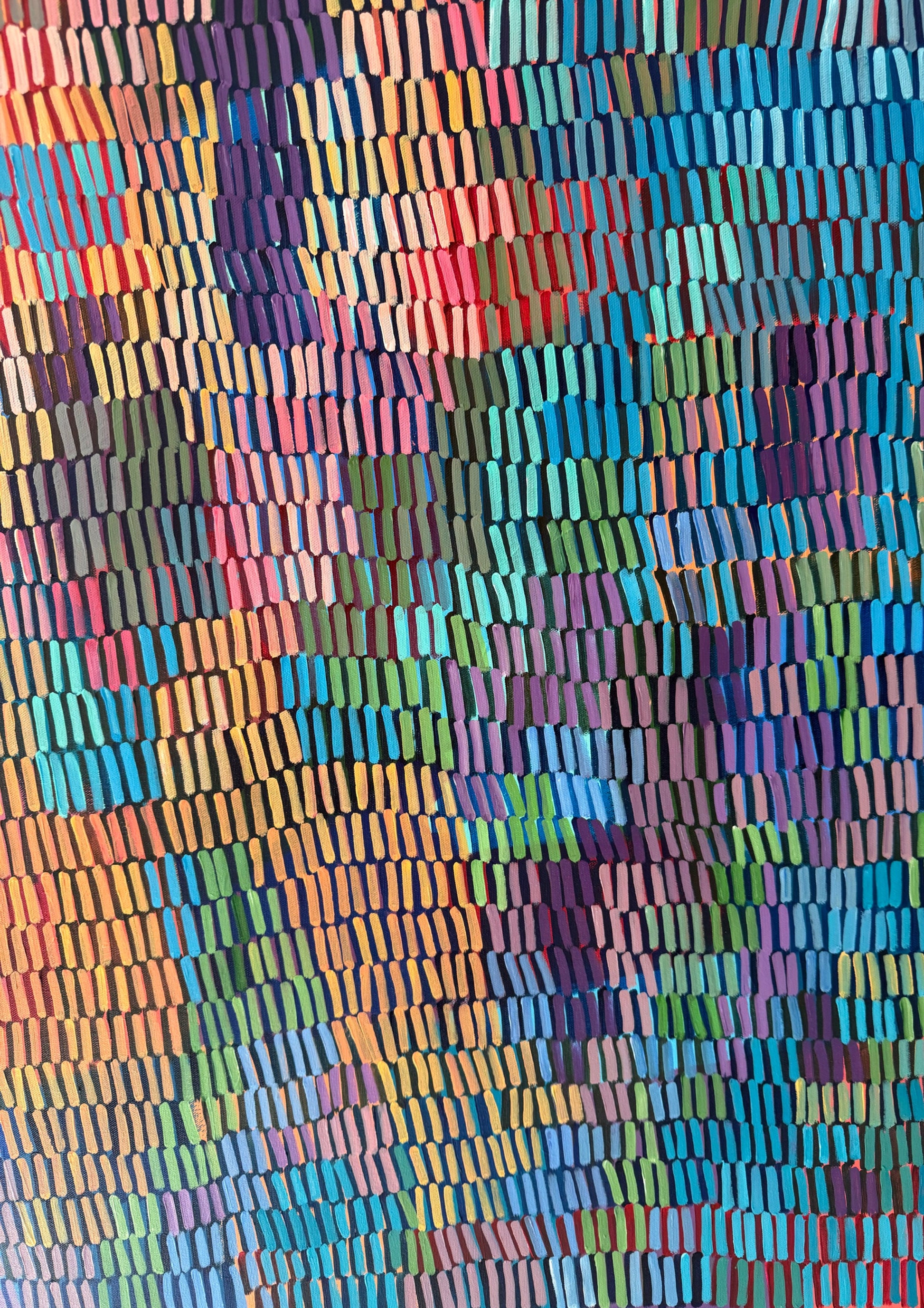 This abstract painting is a vibrant tapestry of spontaneity, each layer and gestural stroke telling a story of intuition and emotion. Crafted from memories and impressions, it captures the essence of life in its raw form. The repetition of mark-making serves a both meditation and a conduit for artistic fulfilment, infusing the art with a profound sense of depth and meaning.