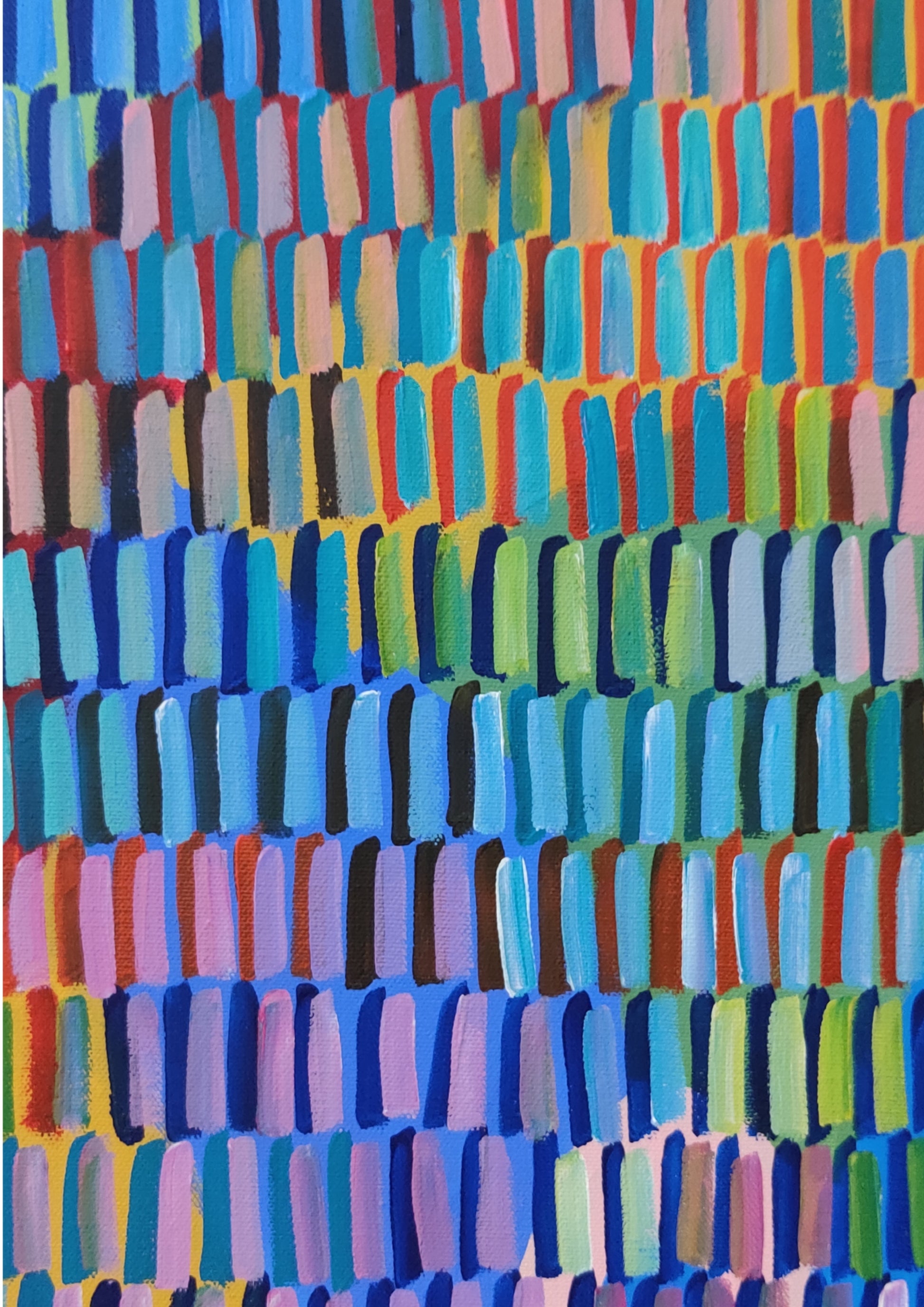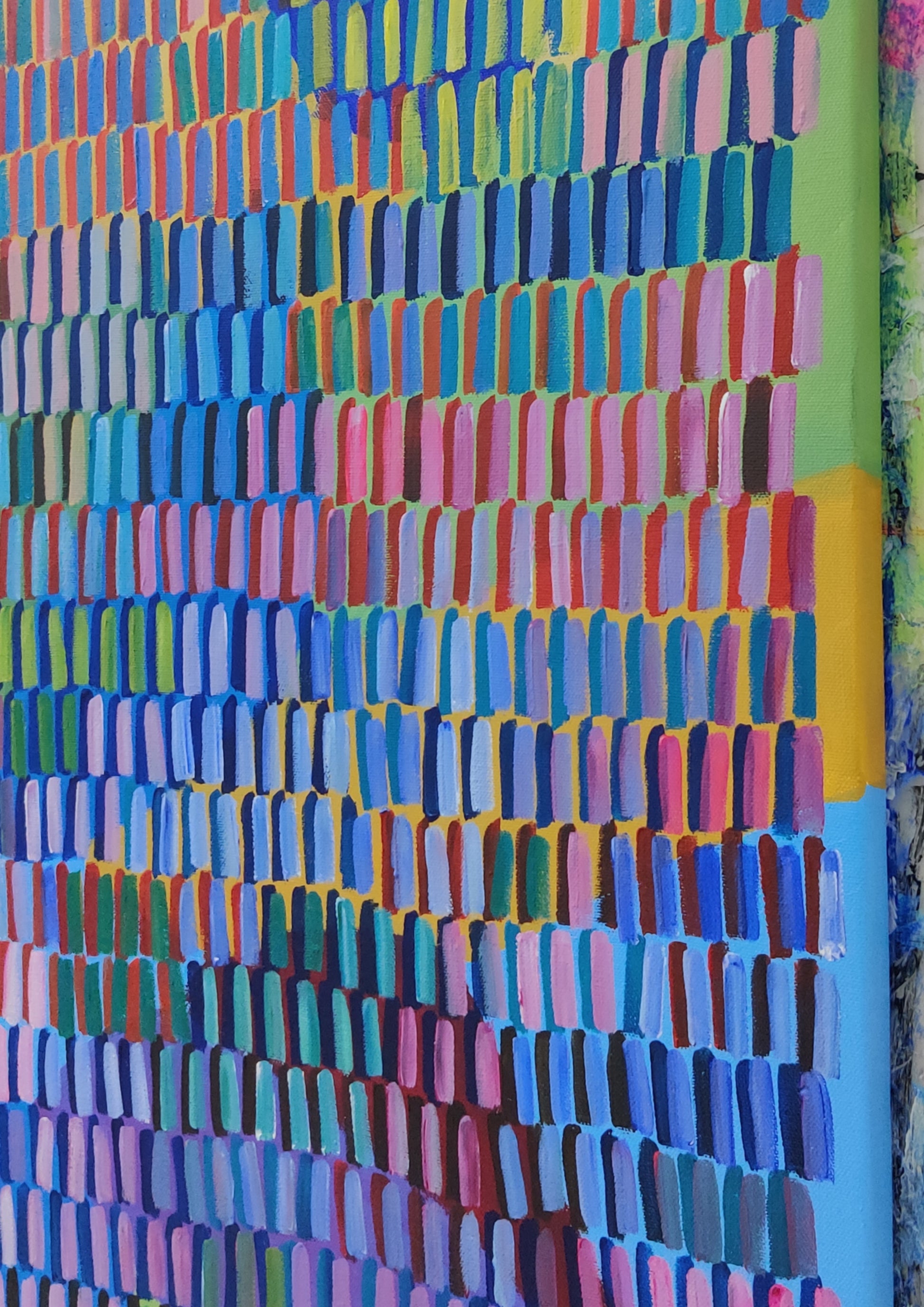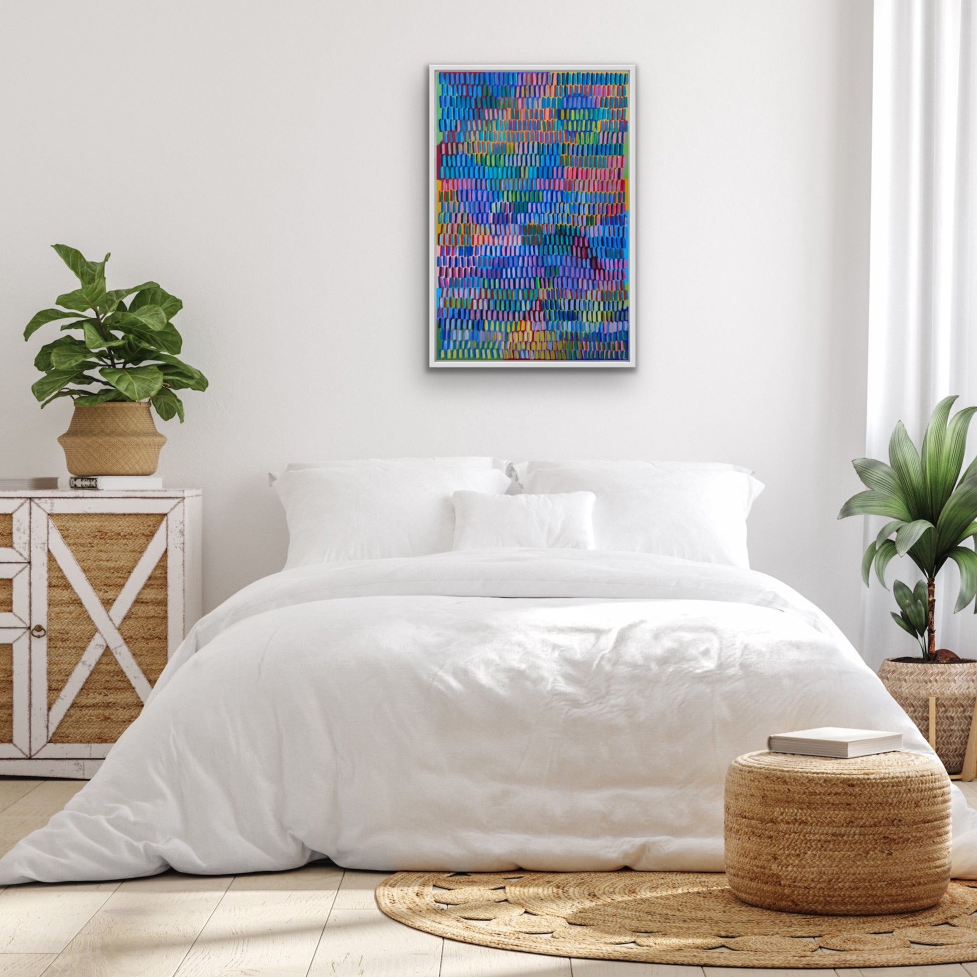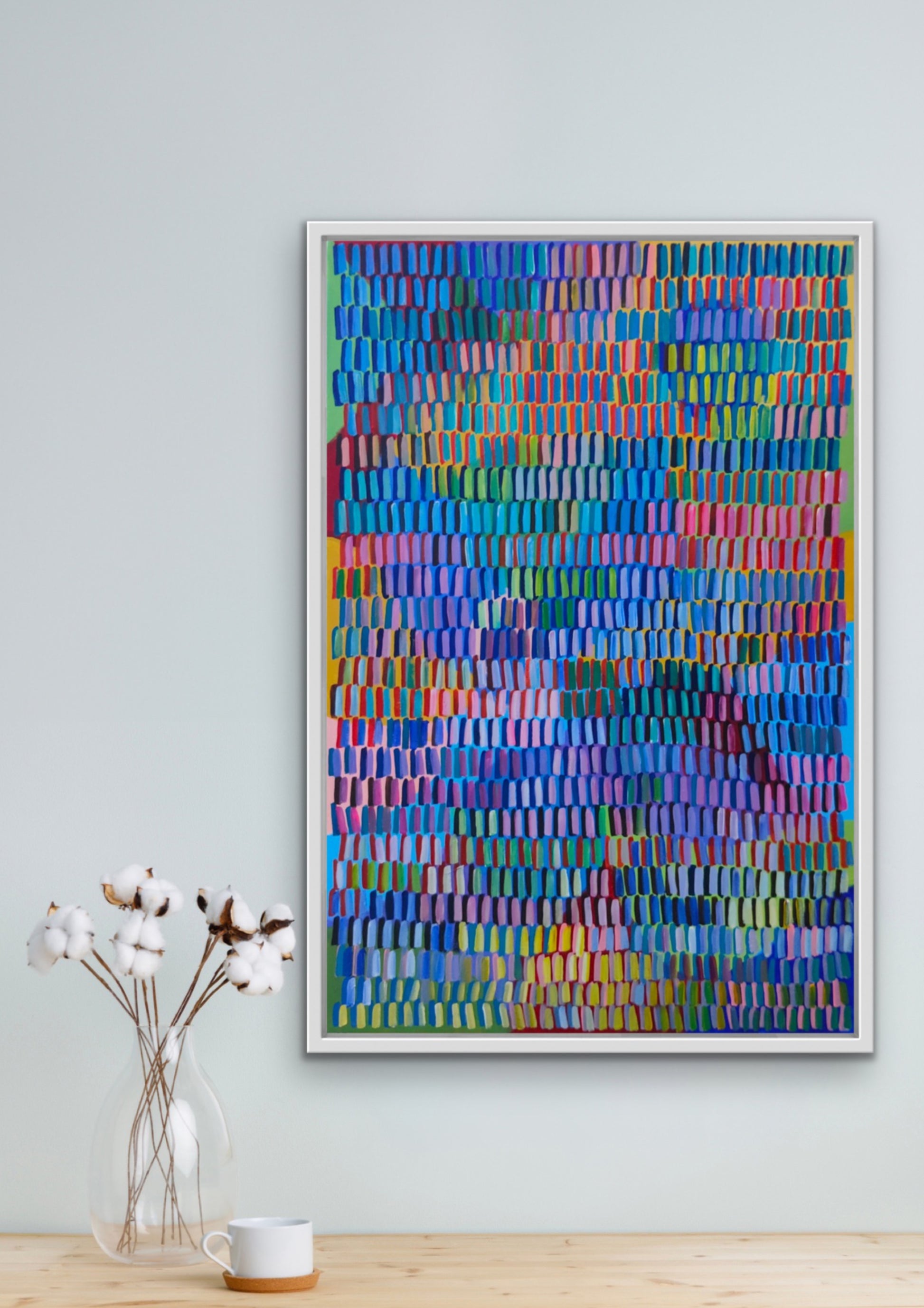 This abstract painting is a vibrant tapestry of spontaneity, each layer and gestural stroke telling a story of intuition and emotion. Crafted from memories and impressions, it captures the essence of life in its raw form. The repetition of mark-making serves a both meditation and a conduit for artistic fulfilment, infusing the art with a profound sense of depth and meaning.