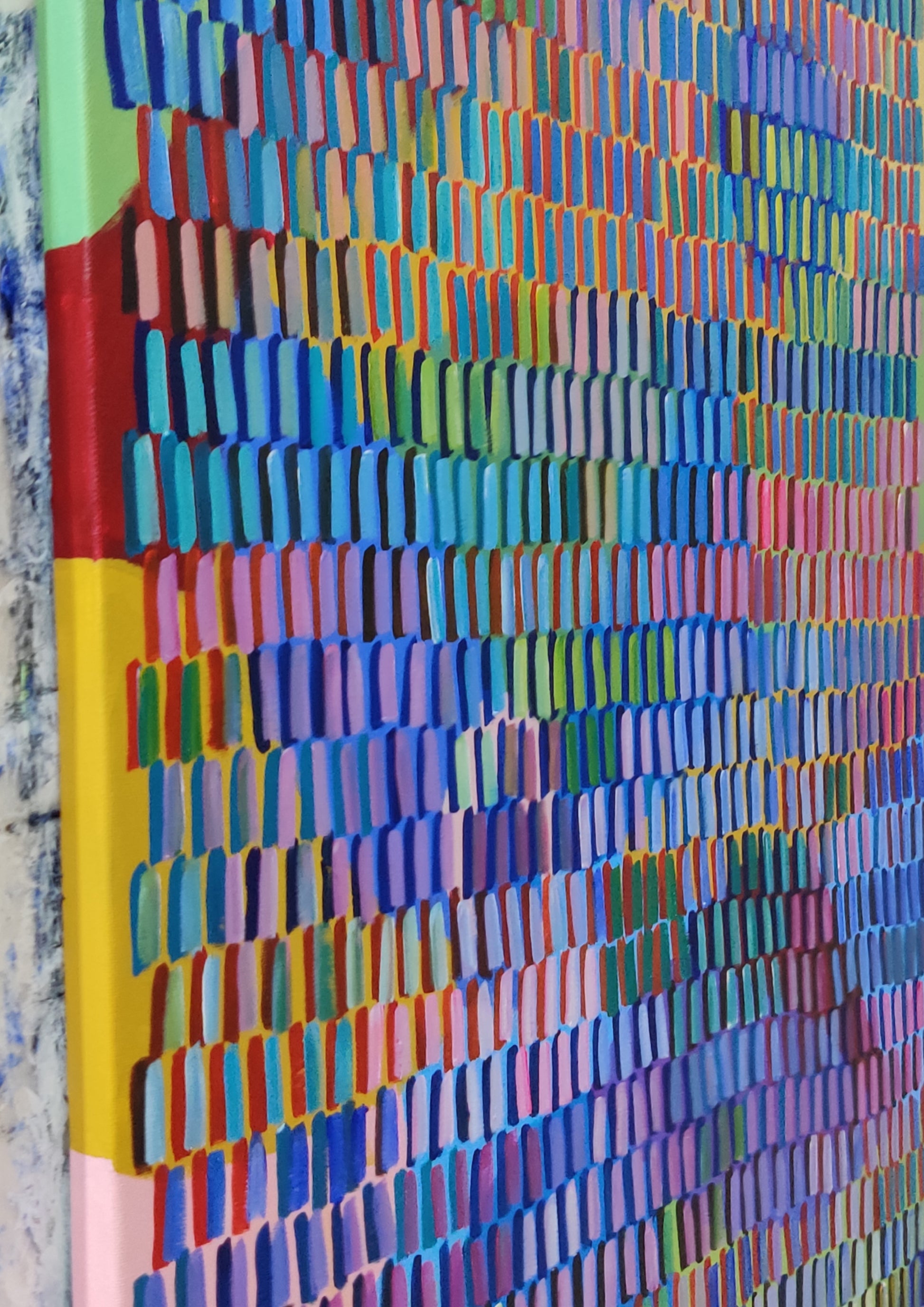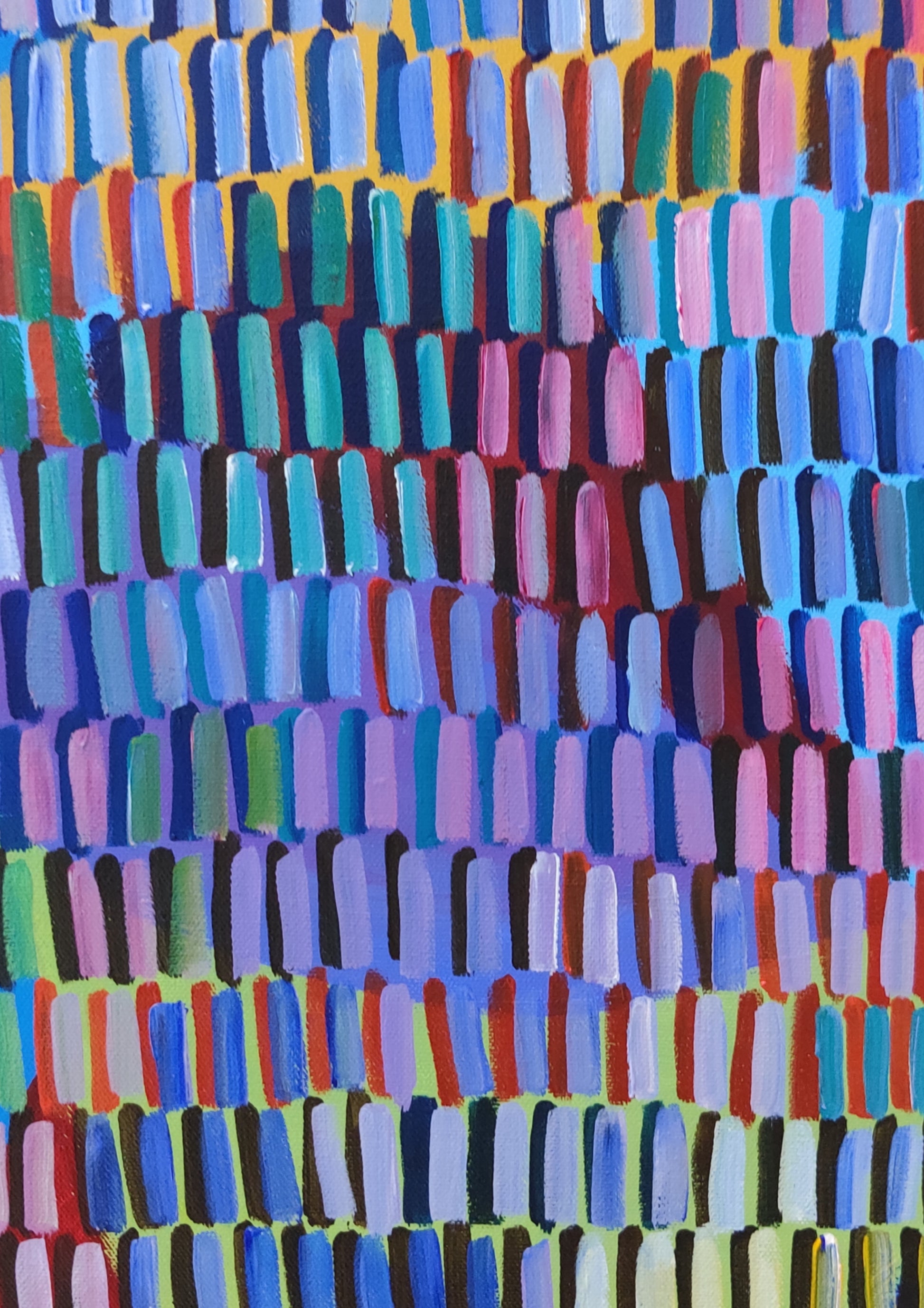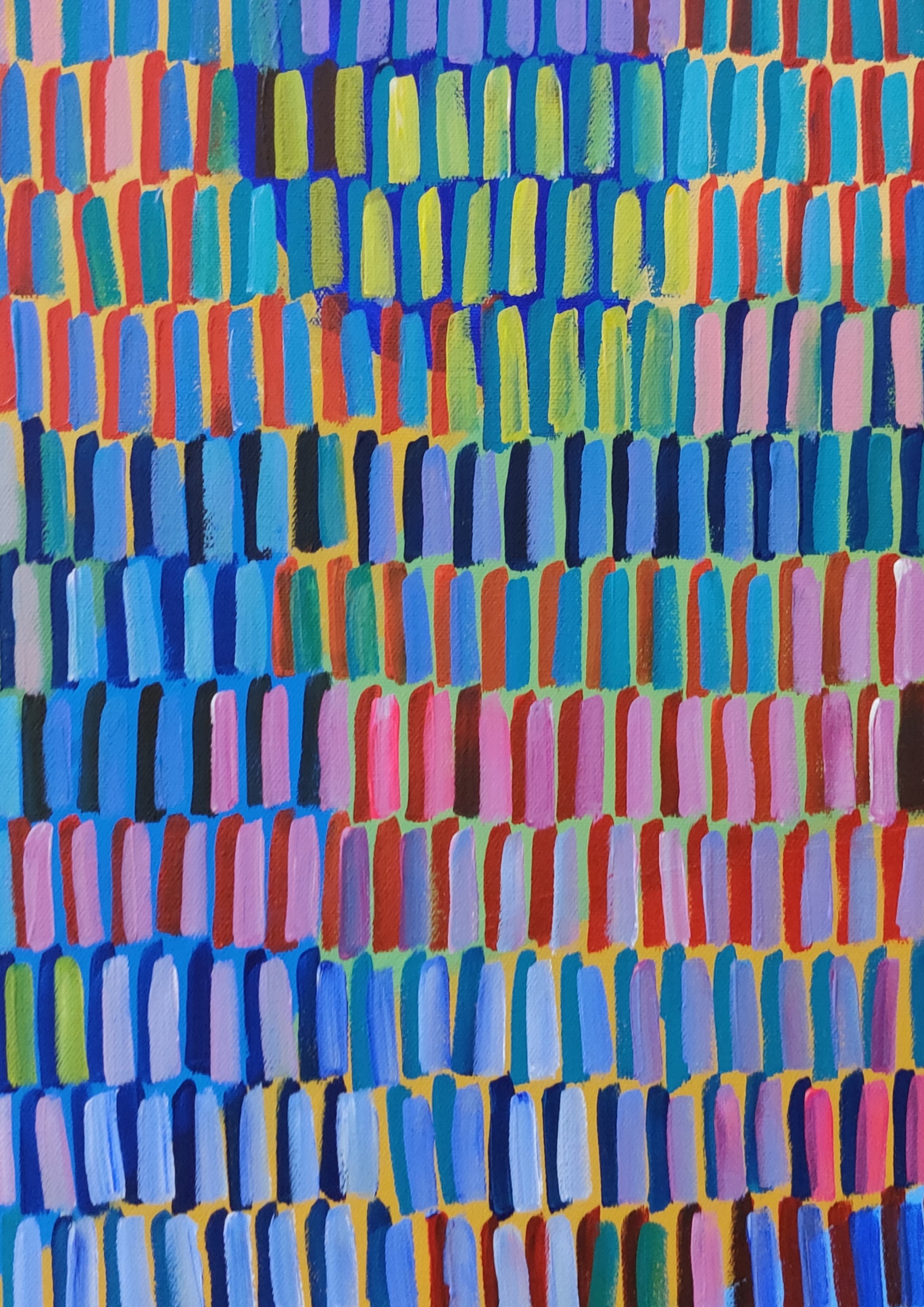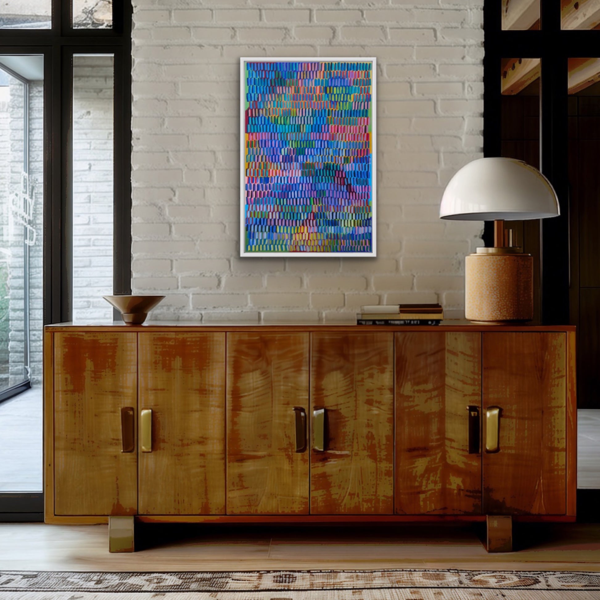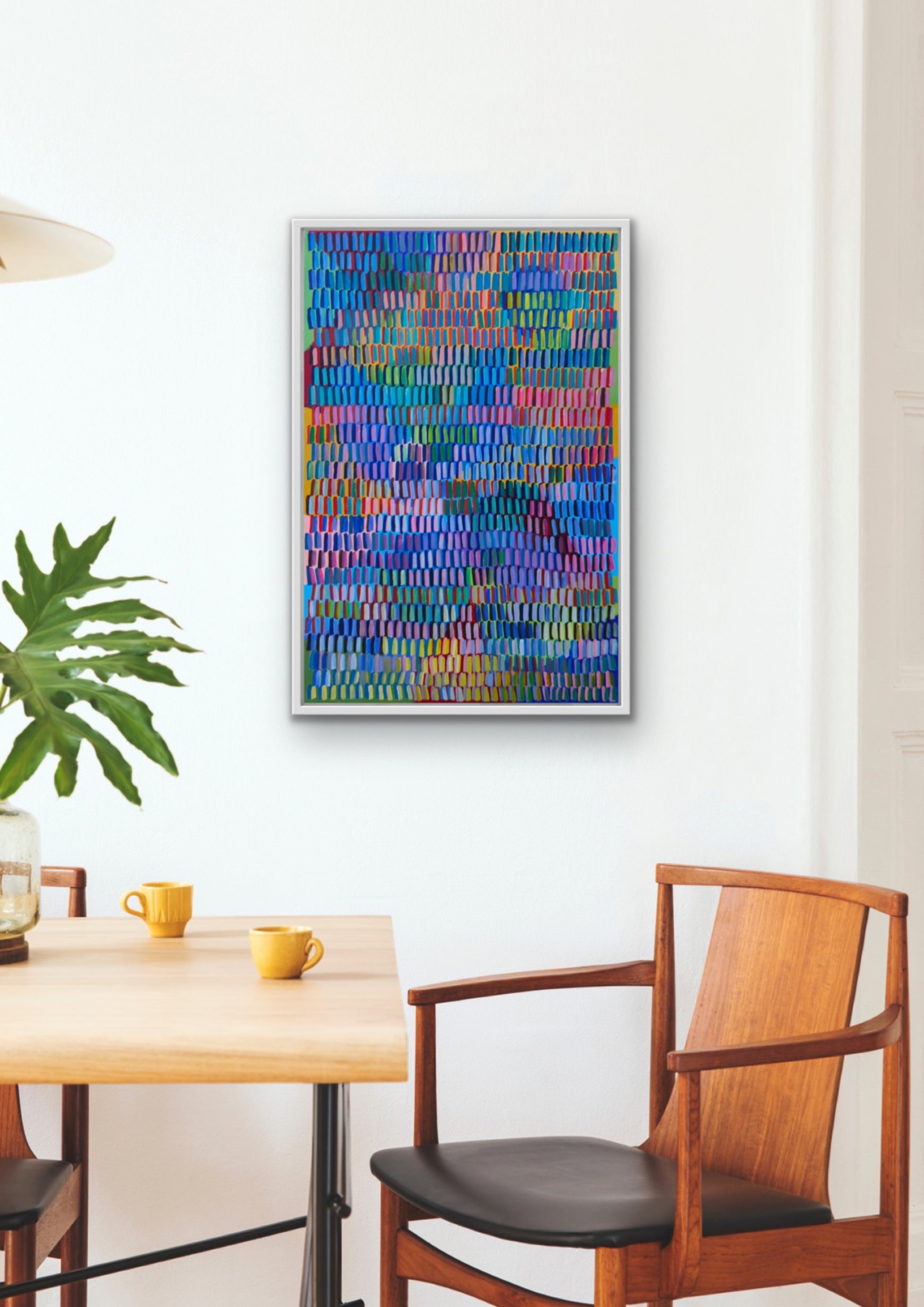 This abstract painting is a vibrant tapestry of spontaneity, each layer and gestural stroke telling a story of intuition and emotion. Crafted from memories and impressions, it captures the essence of life in its raw form. The repetition of mark-making serves a both meditation and a conduit for artistic fulfilment, infusing the art with a profound sense of depth and meaning.